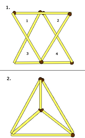 Як з шести однакових сірників зробити 4 рівносторонніх трикутників однакових розмірів?
