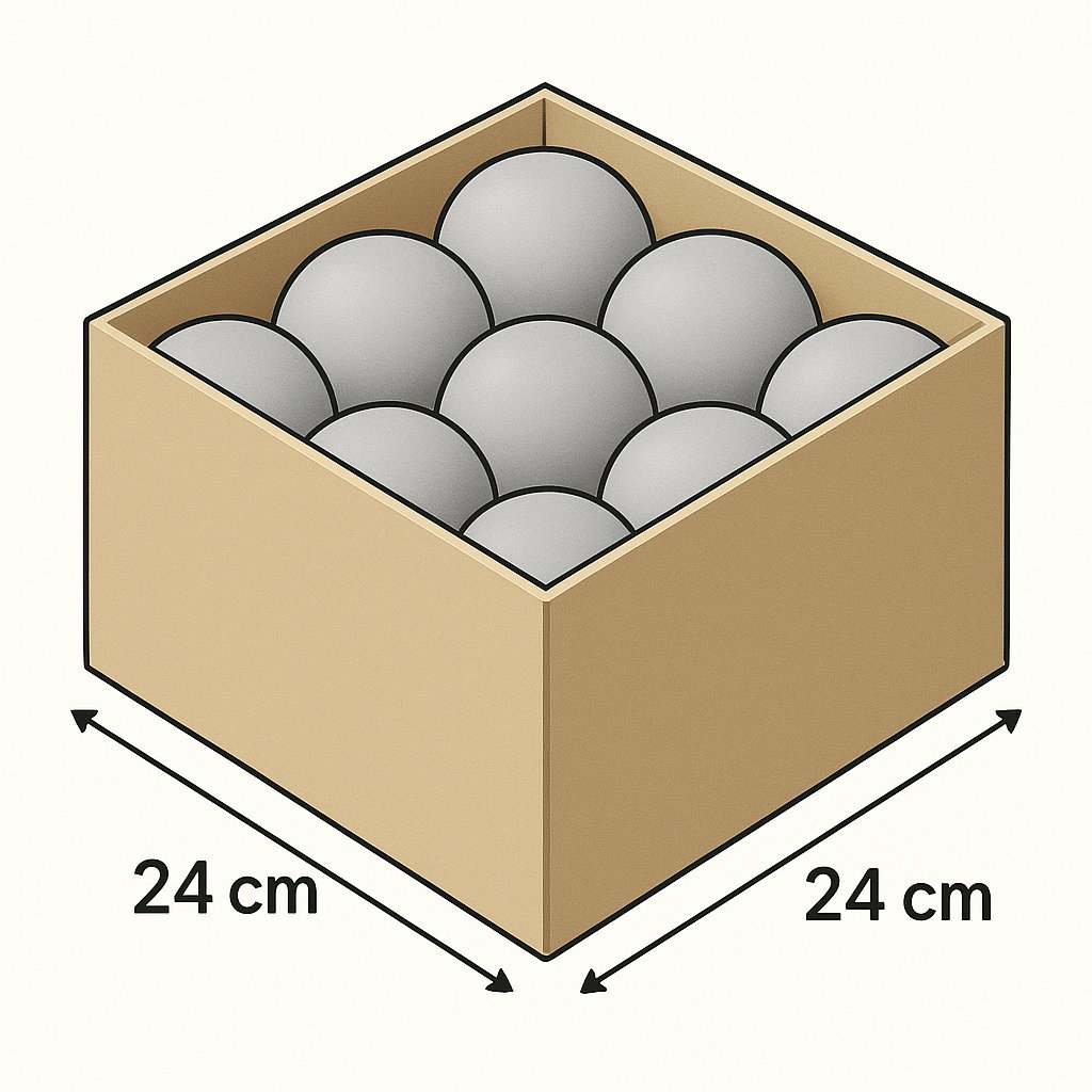 Яким є найбільший діаметр кулі, якщо в коробці розмірами 24x24x24 см вміщується дев’ять таких куль?